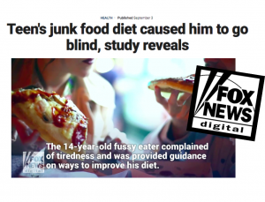 “Teen’s junk food diet caused boy to go blind.” “Even one diet soda a day may triple your risk for developing dementia.” “Dark chocolate may…